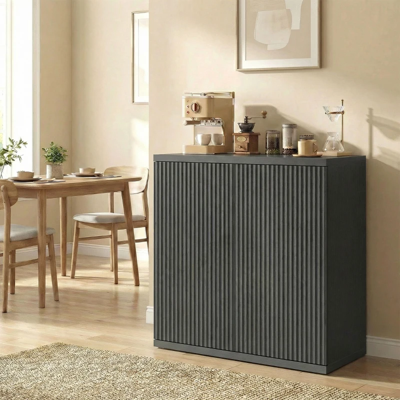 HOMCOM Sideboard Buffet Cabinet, 30.7" Kitchen Cabinet with Soft-Close Door and Adjustable Shelves, Distressed Black Grey