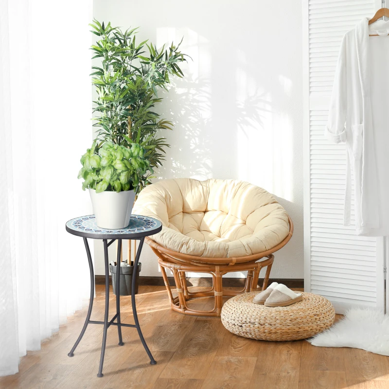 Outsunny Mosaic Patio Table, Round Coffee Table with Metal Frame, Garden Furniture for Outdoor, Poolside, Blue